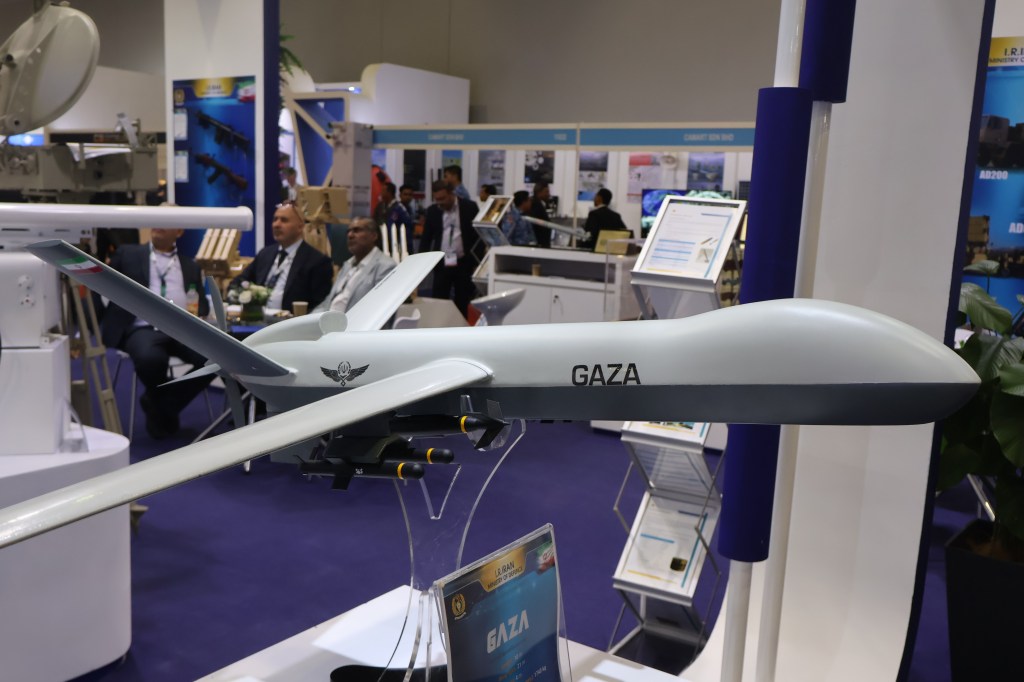 As usual these days, there were drones galore on display at DSA, big and small. Thanks to the Russia-Ukraine war, there was an increase in counter-drone systems. There were some interesting home-grown products on show, but I noticed that the four Malaysian companies who have been accused and sanctioned by the US for helping Iran’s drone production, were not exhibiting. (Iran made a rare international appearance at DSA, with some of its UAVs on display, as I reported here, including one named Gaza – below)