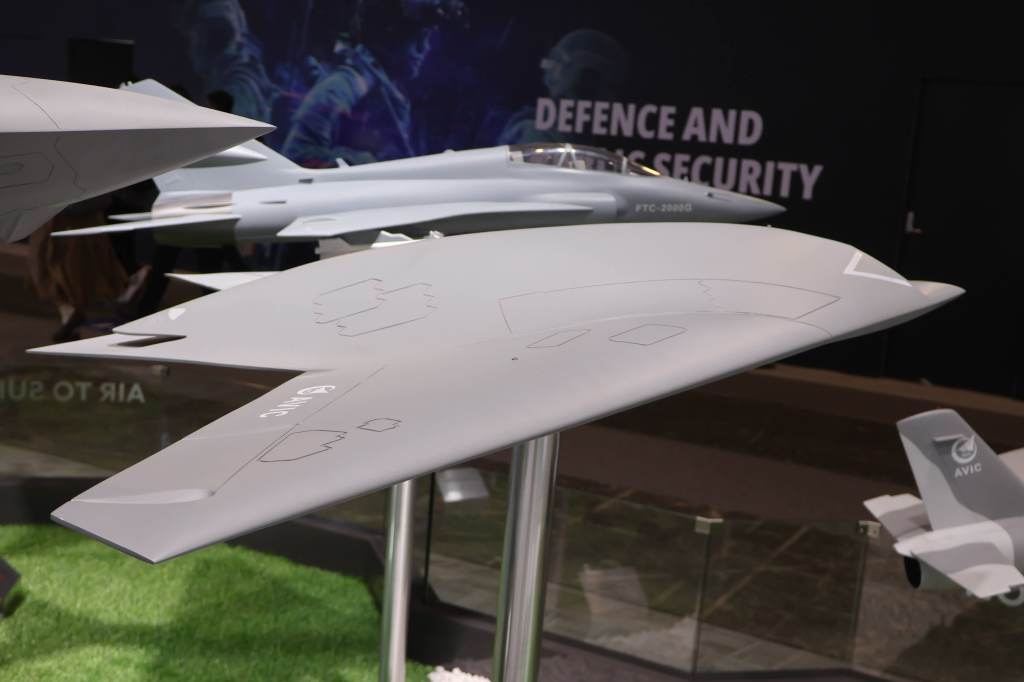 The AVIC stand featured the usual large collection of scale models, mostly 1/10th. The ones that caught my attention were a large unmanned, armed helicopter labelled X-2000, the GJ-11 UCAV, a new version of the Wing Loong MALE UAS, and a tandem-seat turboprop trainer.