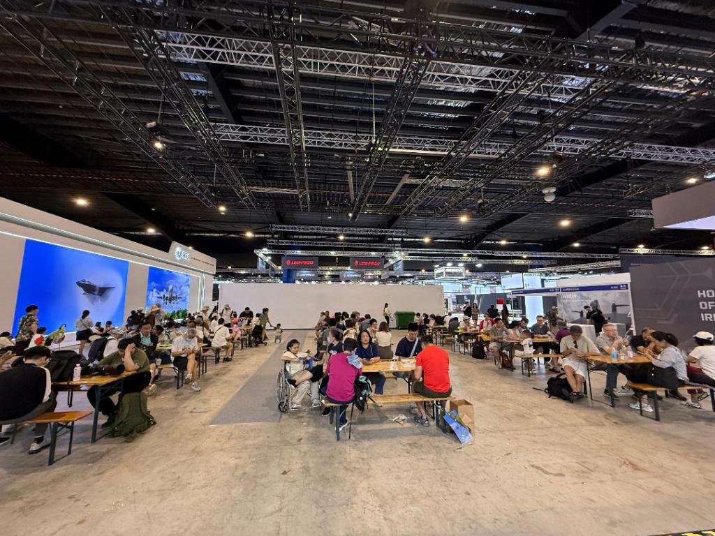 Most show visitors reached the site via the long detour along Tanah Merah Coast Road and Aviation Park Road, on a huge area of land that was reclaimed from the sea some years ago. They could see the massive construction works for Changi’s Terminal Five, which is set to open in the early 2030s and offer an additional 50 million passengers annual capacity. Near to the site, large buildings to accommodate a depot for the a new MRT line were apparent.