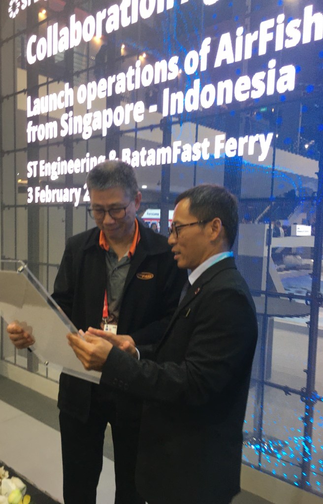 I’m glad to report progress on an unusual and innovative craft that I first wrote about two years ago for AIN Singapore Airshow News. At the 2026 Singapore show, home-grown aerospace company ST Engineering signed a lease agreement with a ferry company that will use an AirFish Wing-In-Ground Effect (WIG) vessel on services between Singapore and the nearby Indonesian island of Batam.